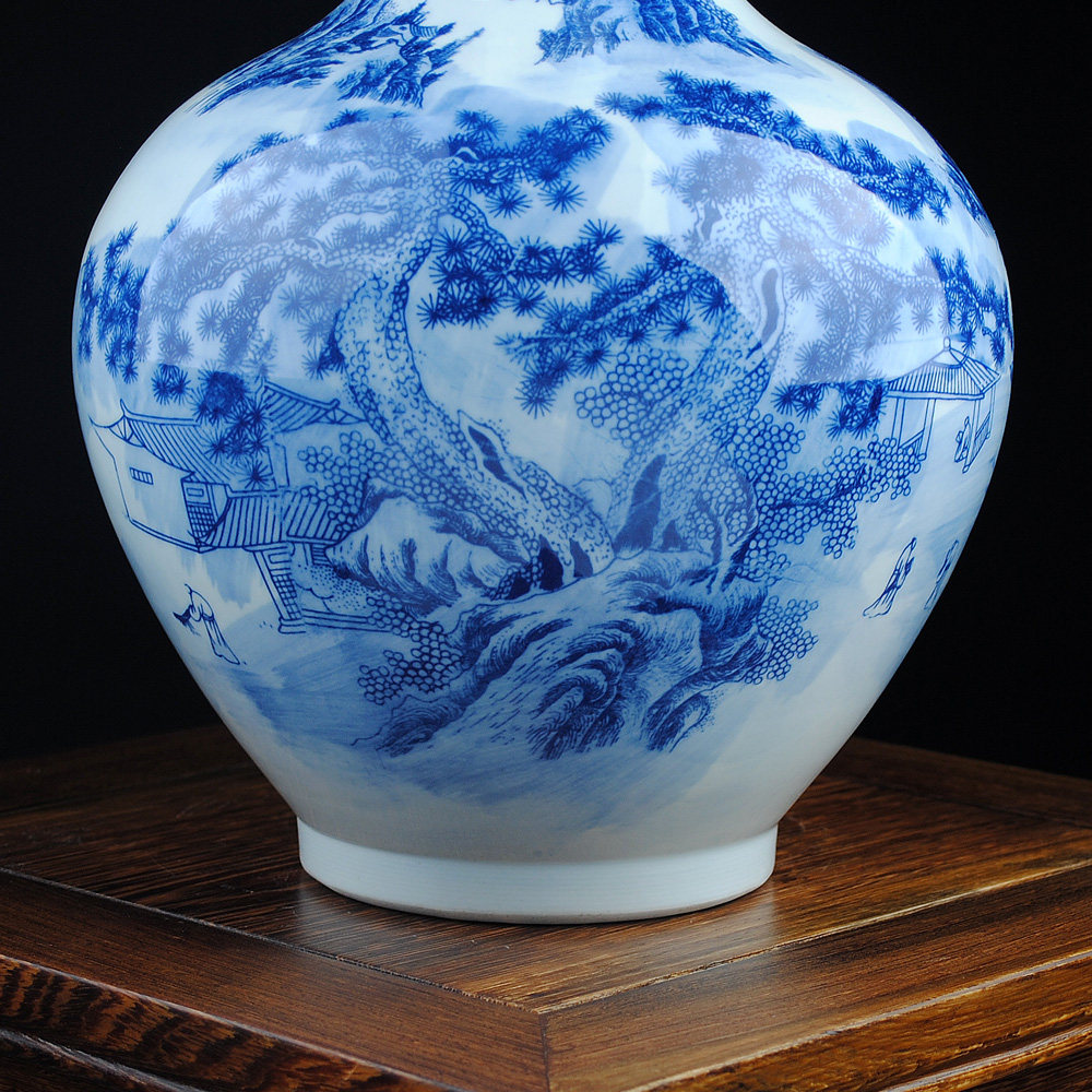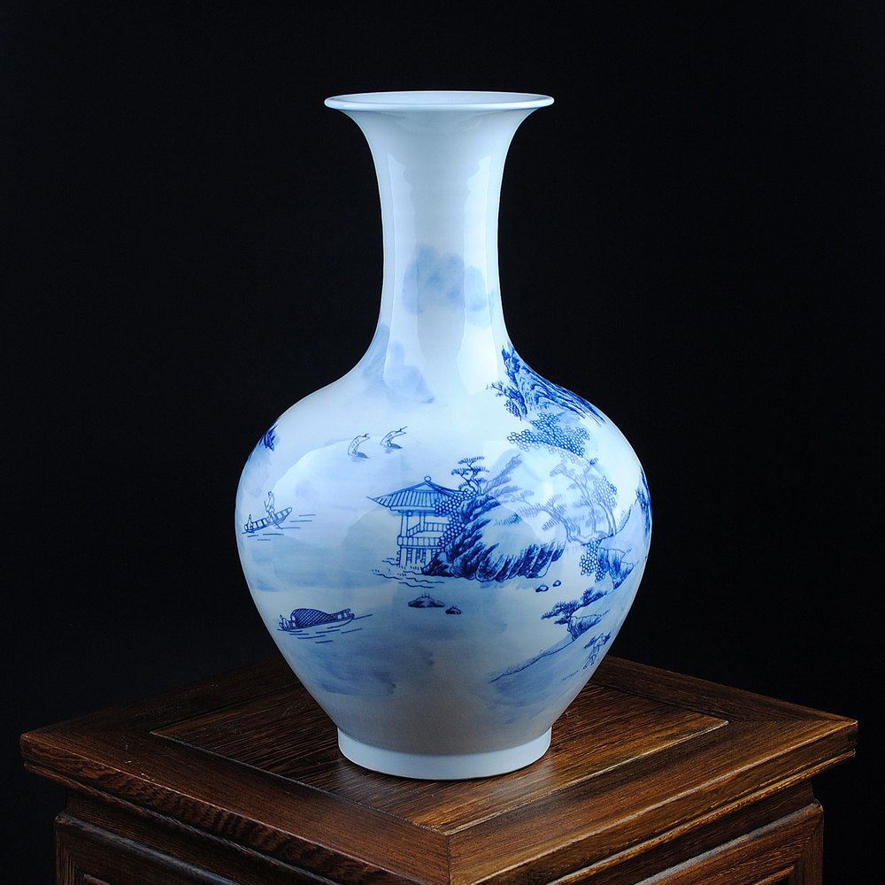 鸿轩陶瓷花瓶青花山水画博古架HX-QHC024