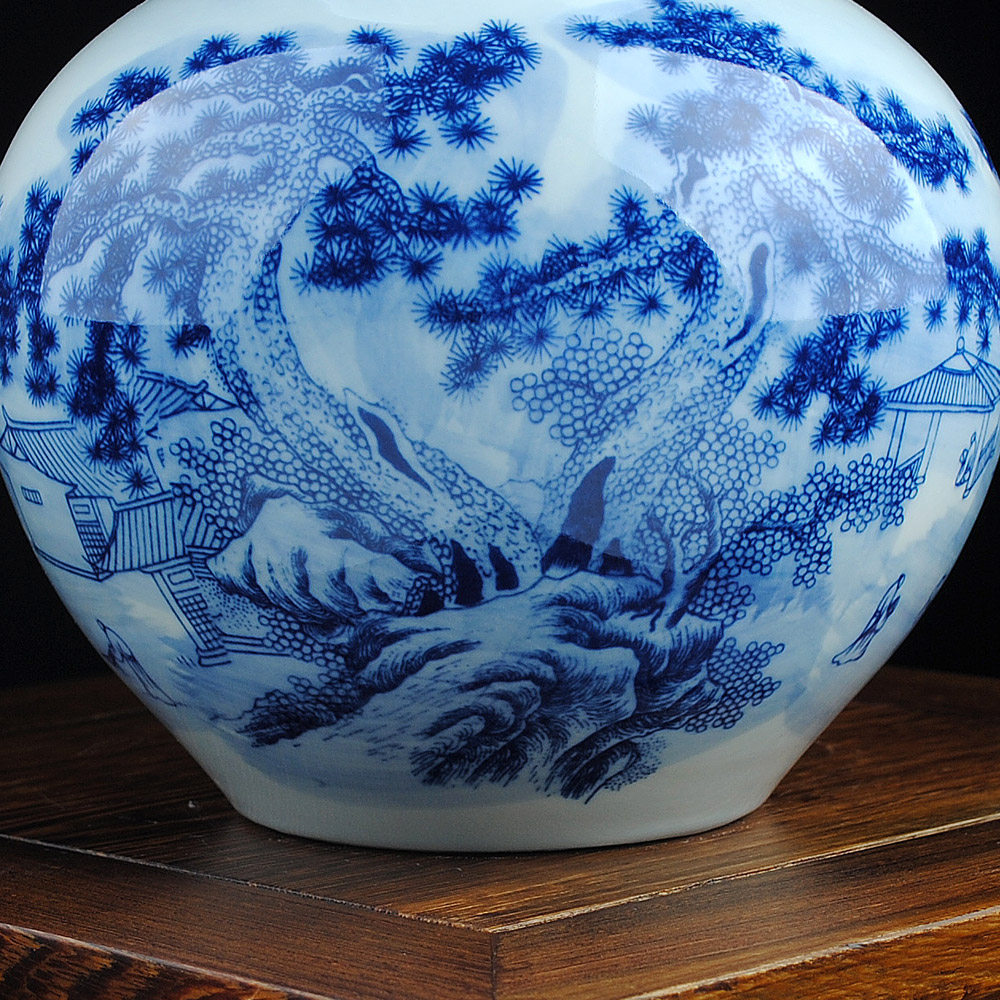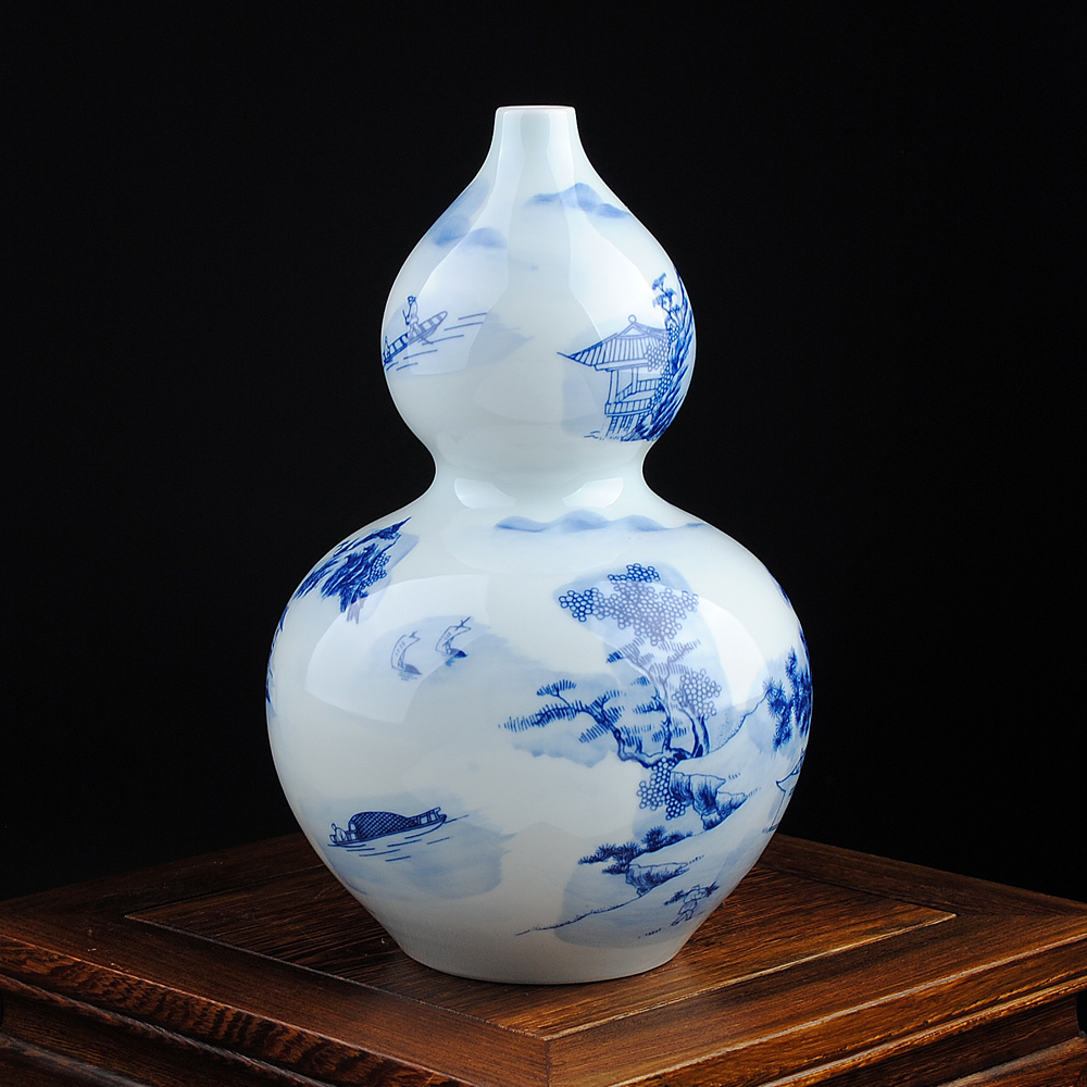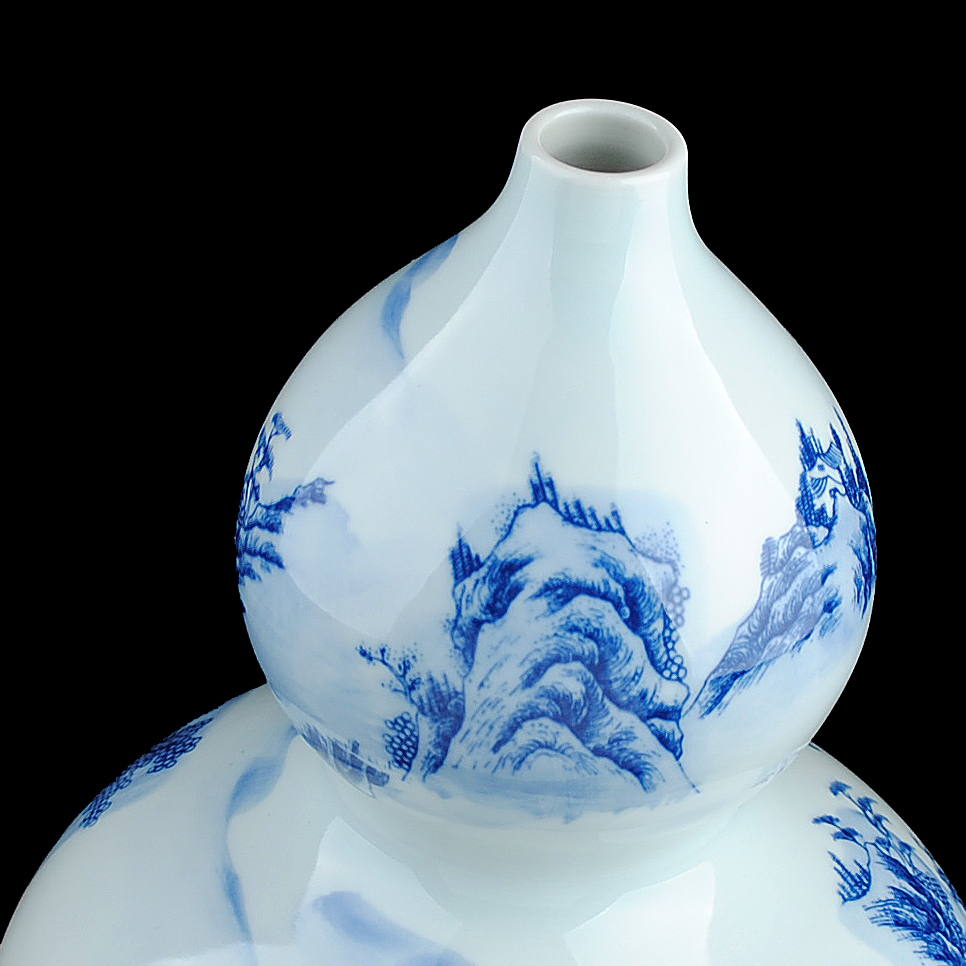 鸿轩青花瓷山水葫芦花瓶博古架HX-SHHP00285