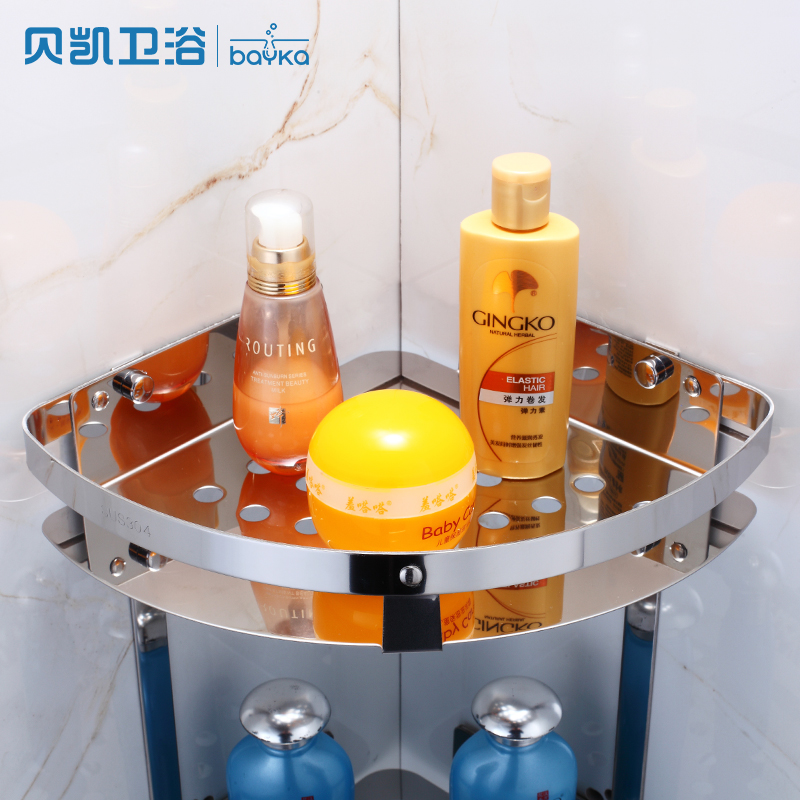 贝凯卫浴置物架宽边圆孔双层三角篮