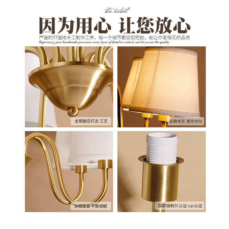凯乔美式吊灯欧式三头全铜吊灯YD166-165-3