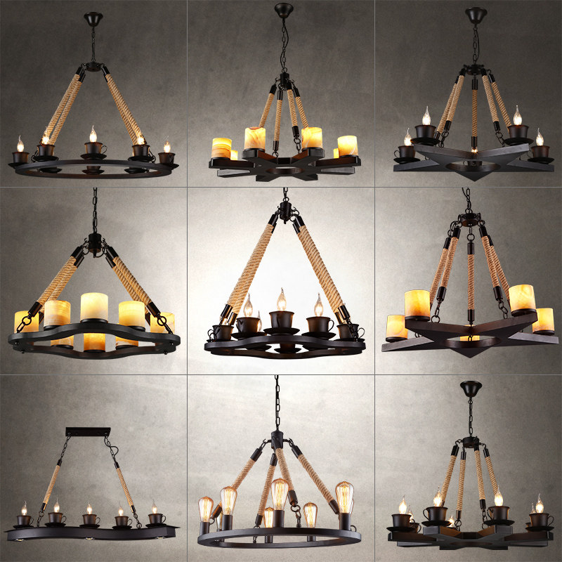 爱迪胜美式怀旧复古麻绳灯铁艺云石吊灯