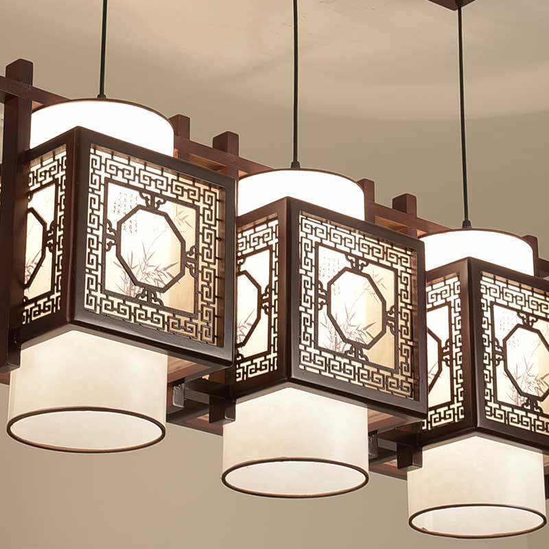 8090捌零玖零现代中式仿古羊皮实木led三头吊灯6608