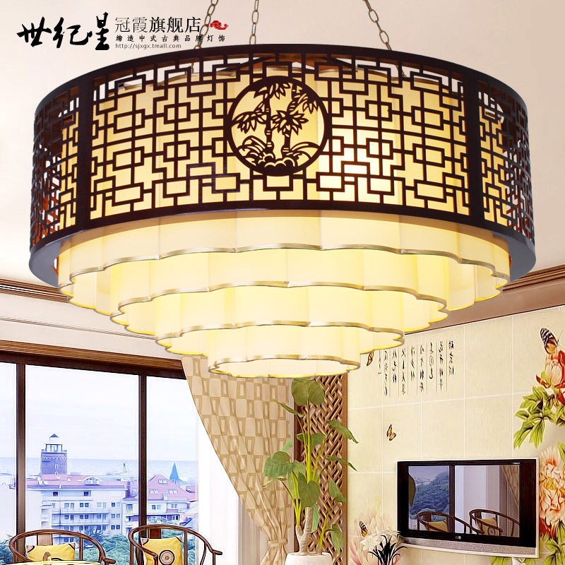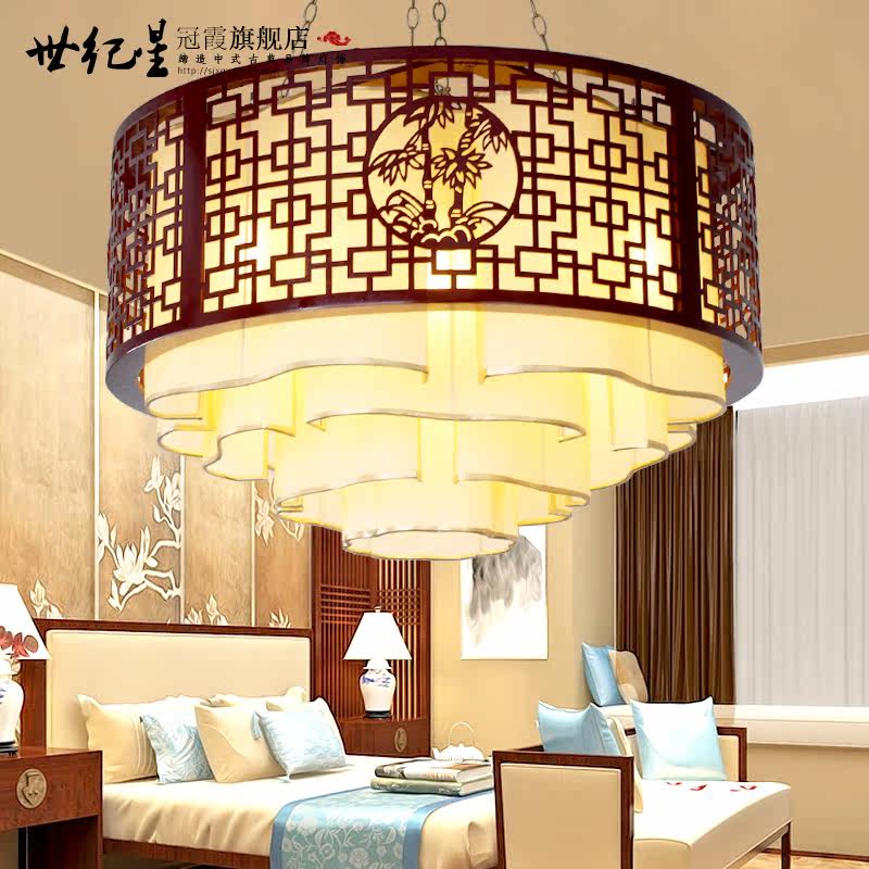 世纪星冠霞中式圆形祥云木艺灯具9526