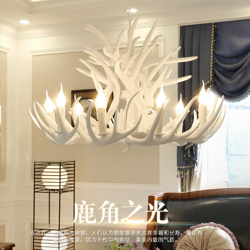 三戈美式乡村白色鹿角吊灯XD-06