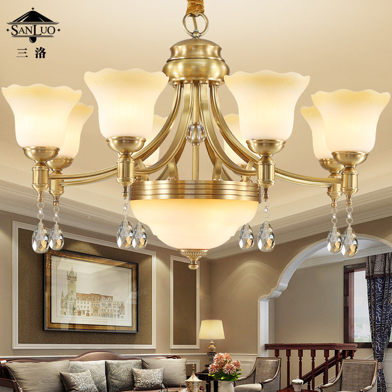 三洛新美式全铜灯水晶吊灯Y097-5D