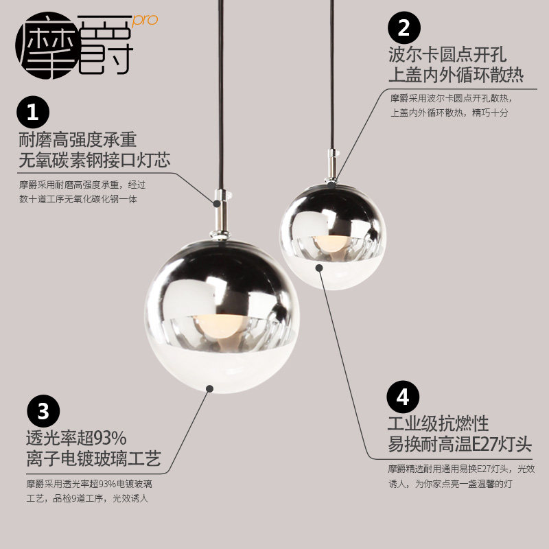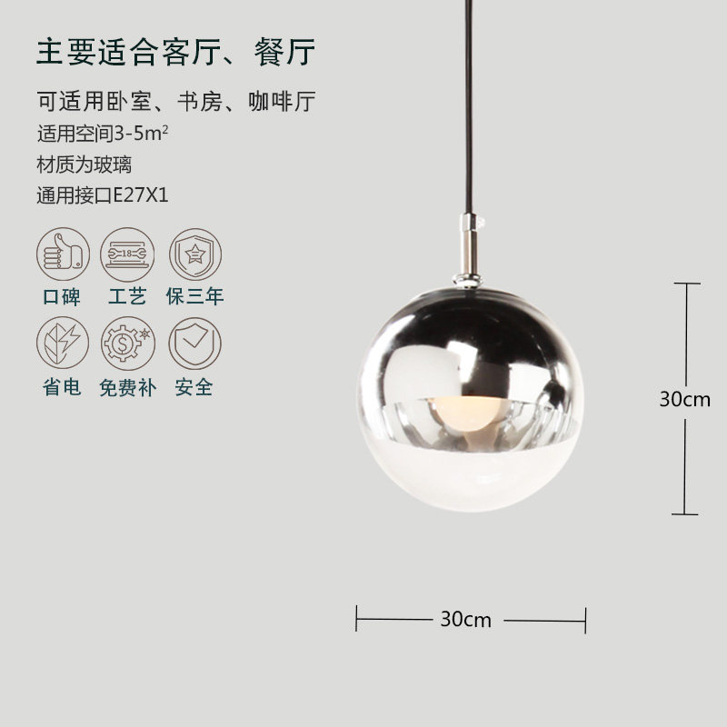 摩爵金铜色电镀玻璃球吊灯MJ-163 1×MAX40W