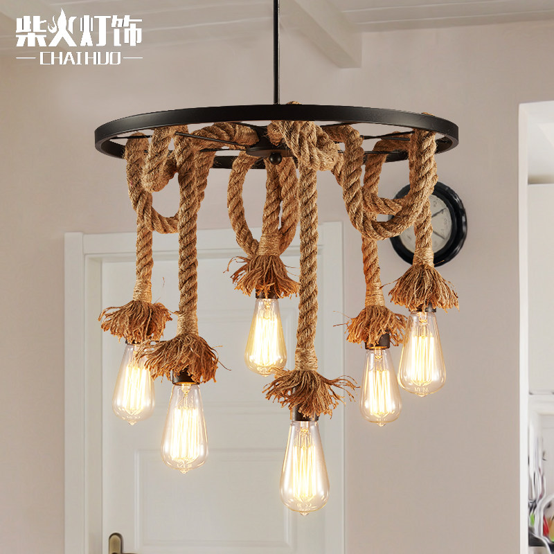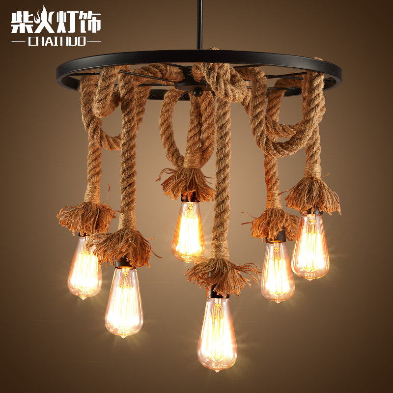 柴火loft师美式乡村复古麻绳吊灯北欧铁艺美式工业麻绳吊灯