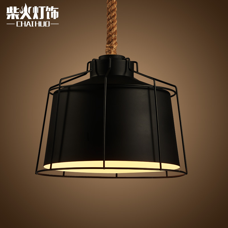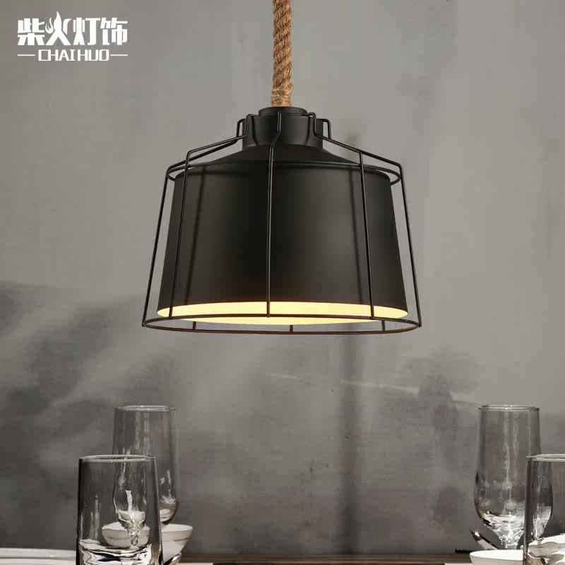 柴火北欧loft创意复古工业麻绳吊灯具
