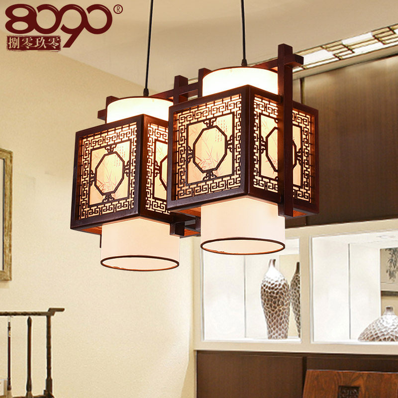 8090捌零玖零复古三头灯实木镂空雕花灯71028