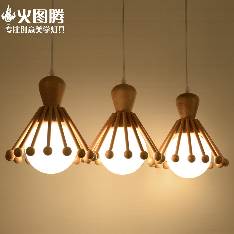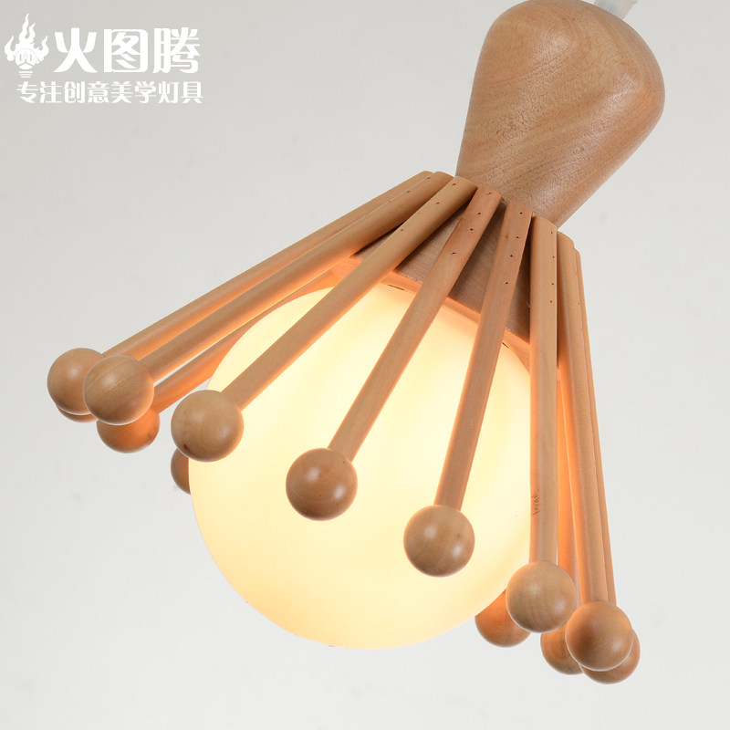 火图腾现代简约玻璃田园实木吊灯HD-8022