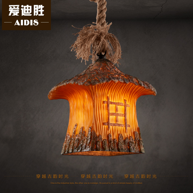 爱迪胜复古工业风单头麻绳吊灯