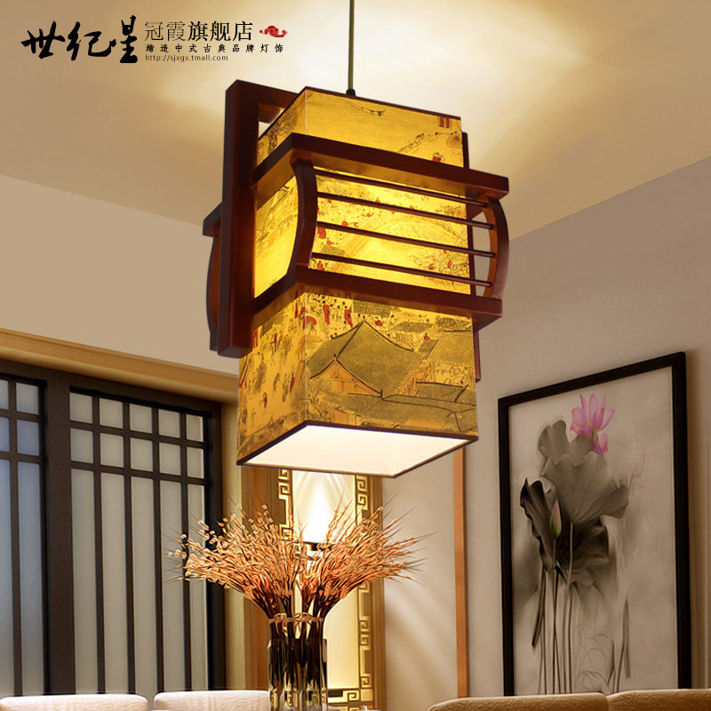 世纪星冠霞中式木艺羊皮吊灯51229