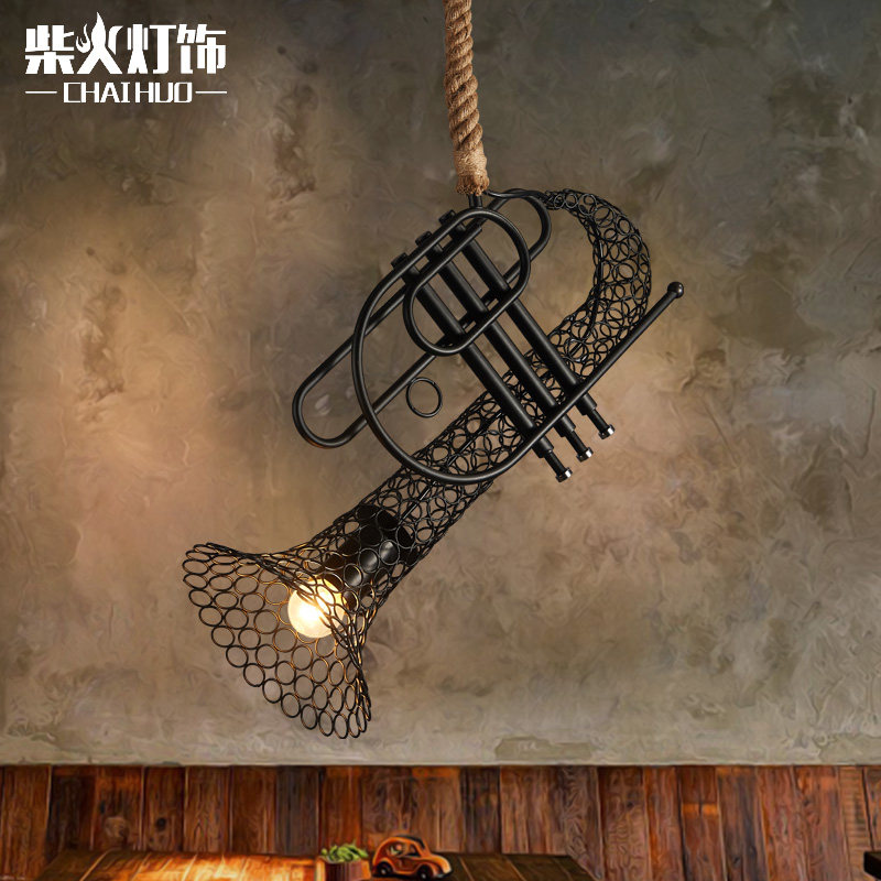 柴火北欧美式乡村花边麻绳吊灯