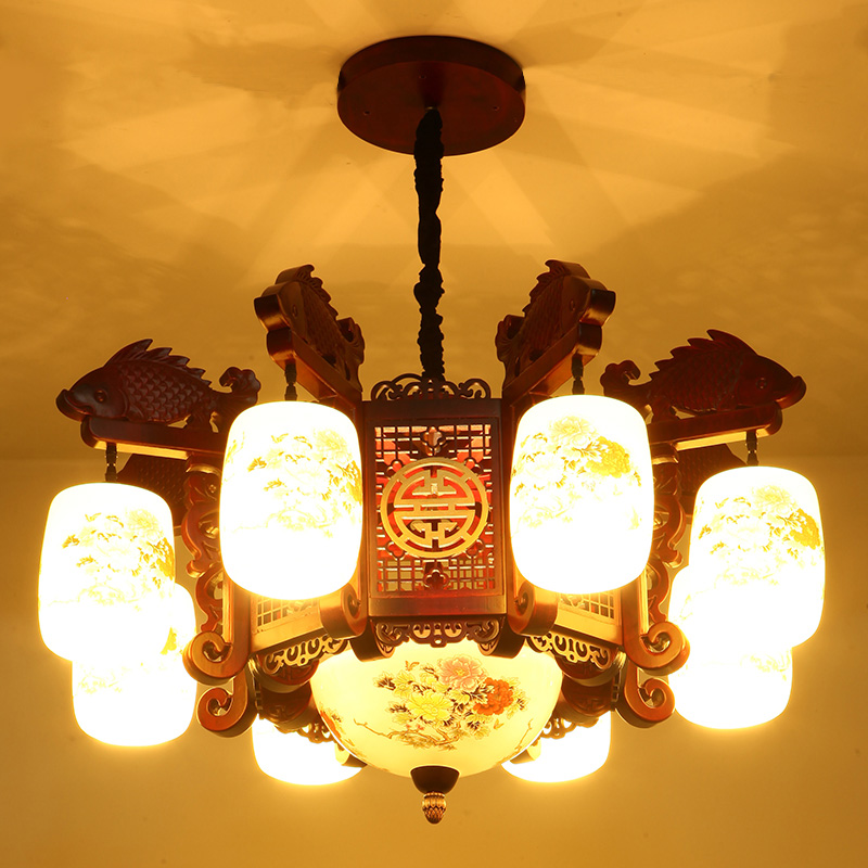 丹妮龙豪华大气中式灯具实木陶瓷灯8122