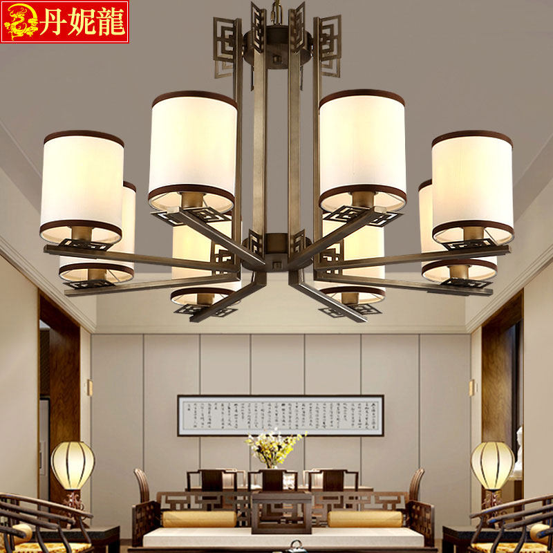 丹妮龙新中式吊灯led灯具书房美式铁艺复古吊灯