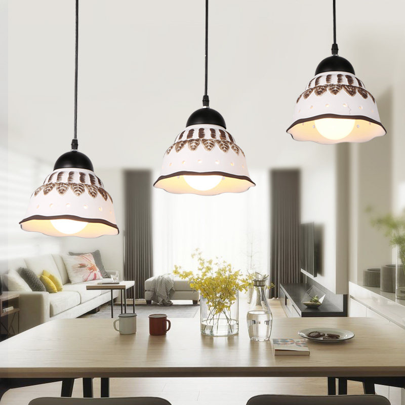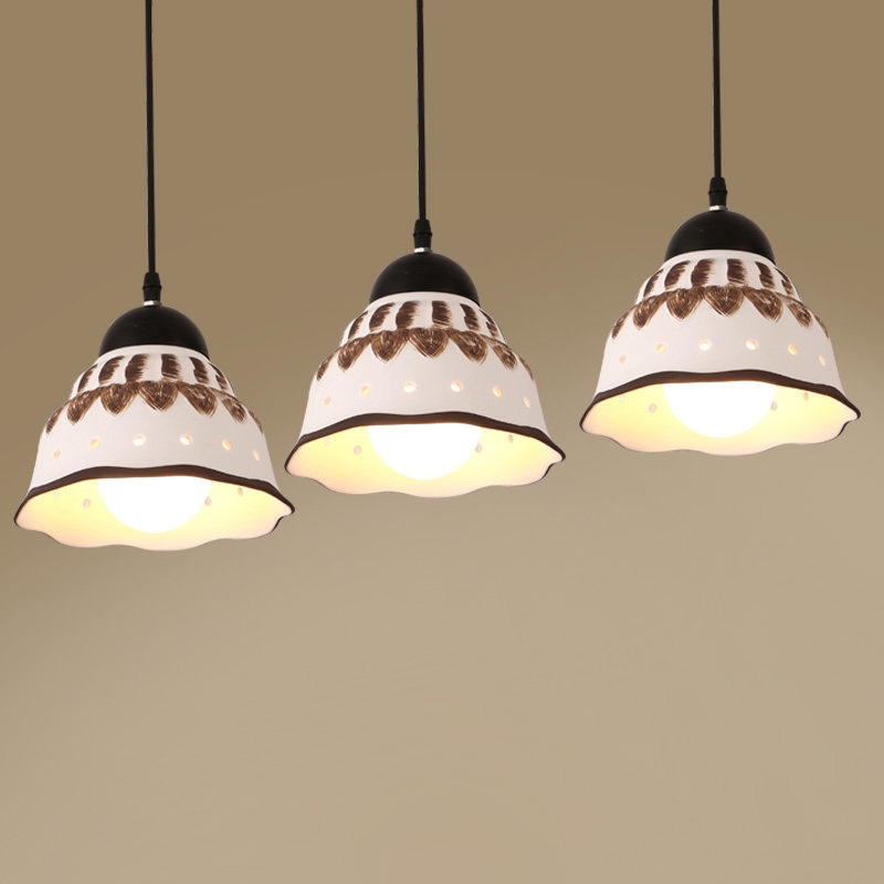 金诺美式乡村陶瓷装饰餐吊灯led三头