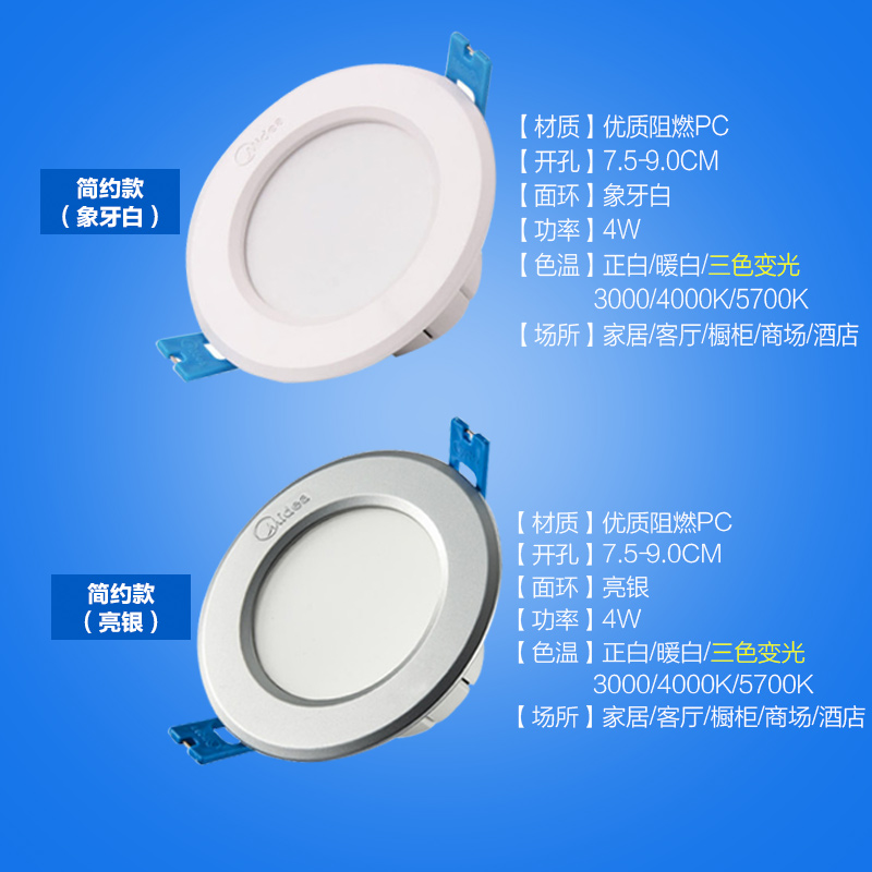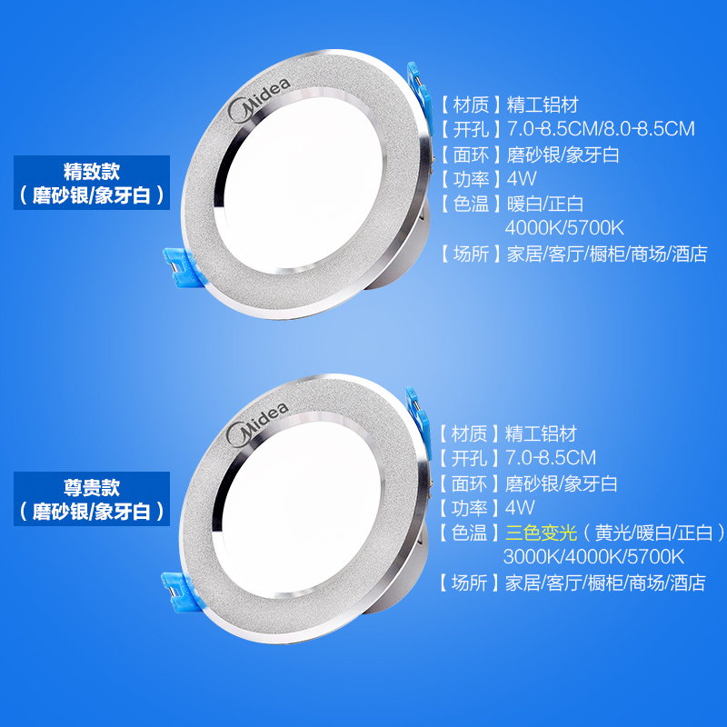 美的led筒灯三色射灯