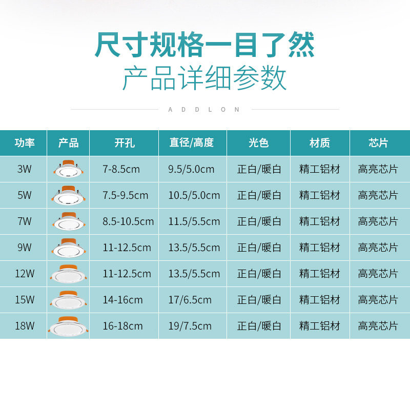 爱德朗led筒灯天花灯ADL-TD01B 5W