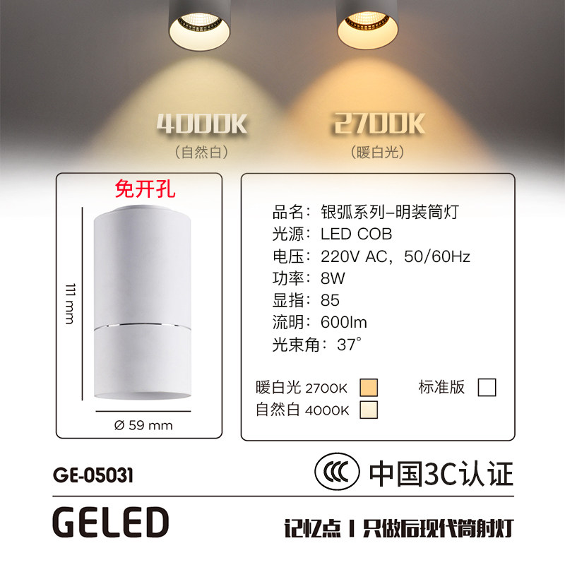 geled圆形明装led欧式筒灯GE-05031-8w-H