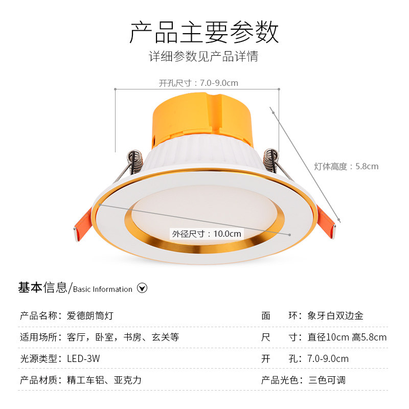 爱德朗led筒灯三色可调天花灯