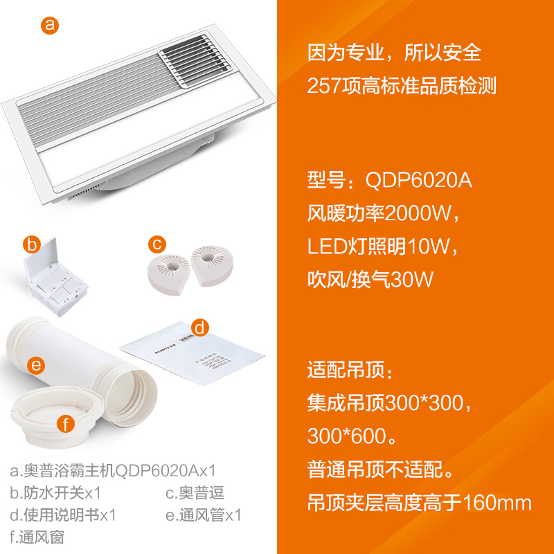 奥普浴霸风暖浴霸led平板灯QDP6020