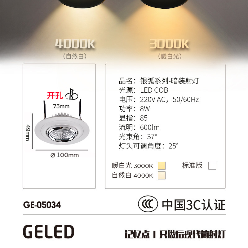 记忆点led筒灯嵌入式天花孔灯GE-05034