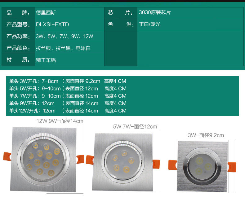 德里西斯led方形天花射灯DLXSI-SD-FXSD