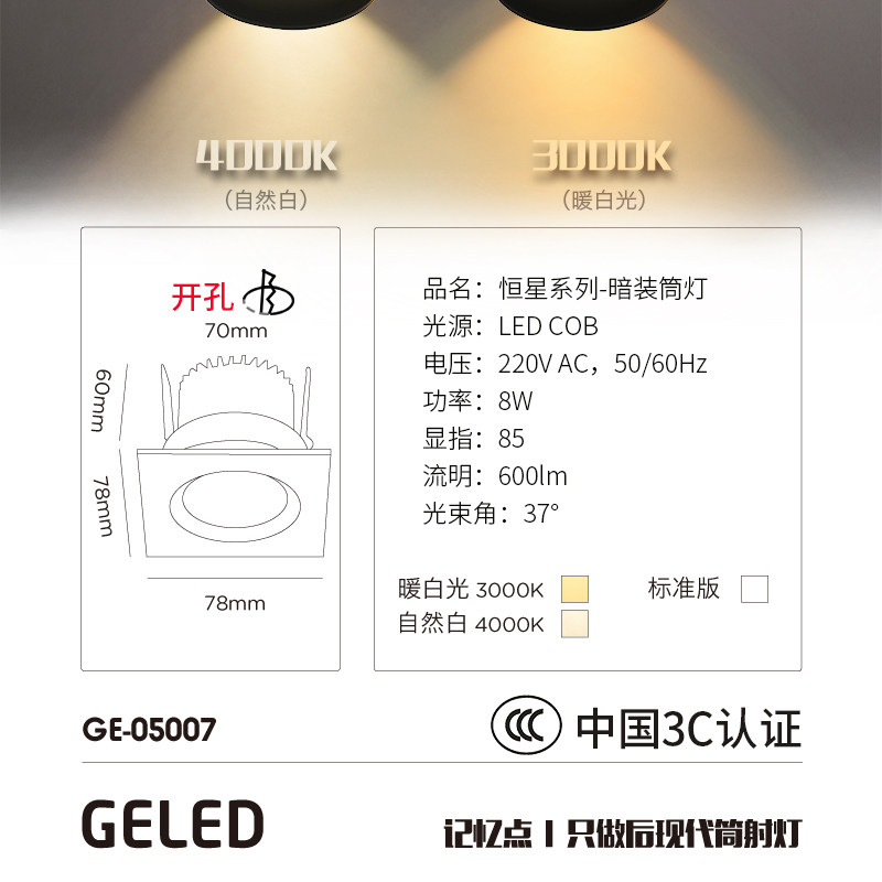 geled记忆点黑色方形筒灯GE5007_black