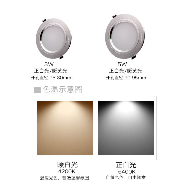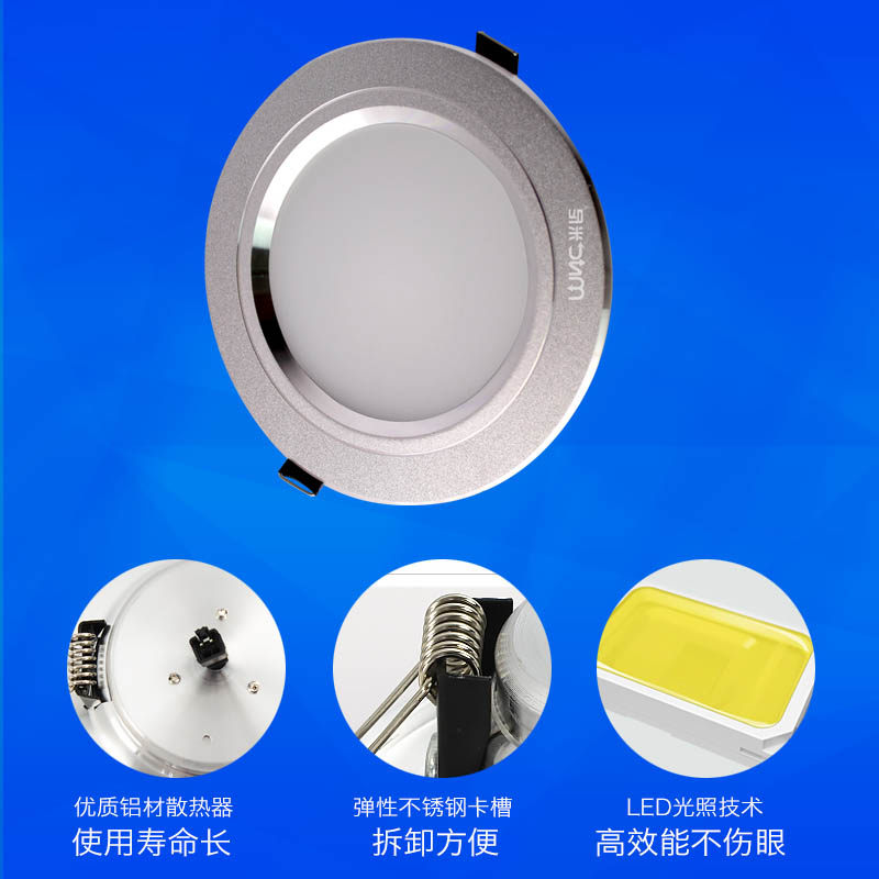 德力西射灯亮银3W天花灯