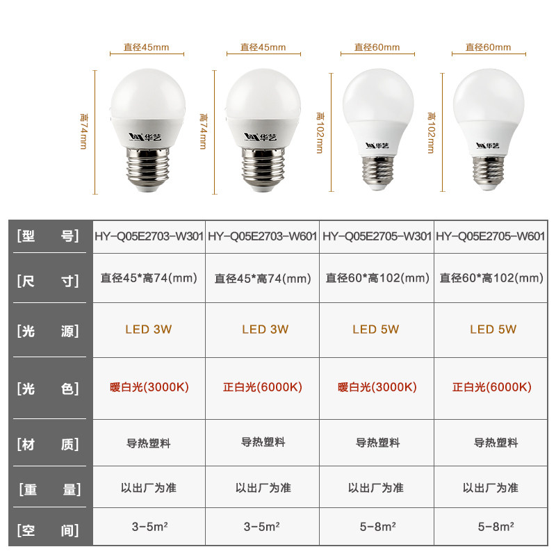 华艺灯饰超亮照明球泡灯泡hyq05e27