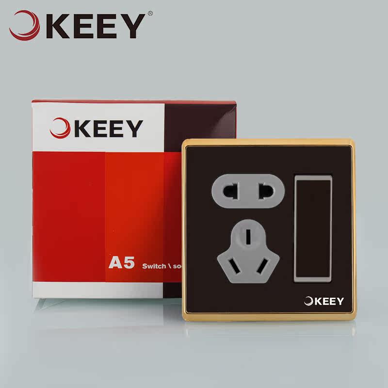 企一照明86型一开五孔开关插座QYA532(香槟金)
