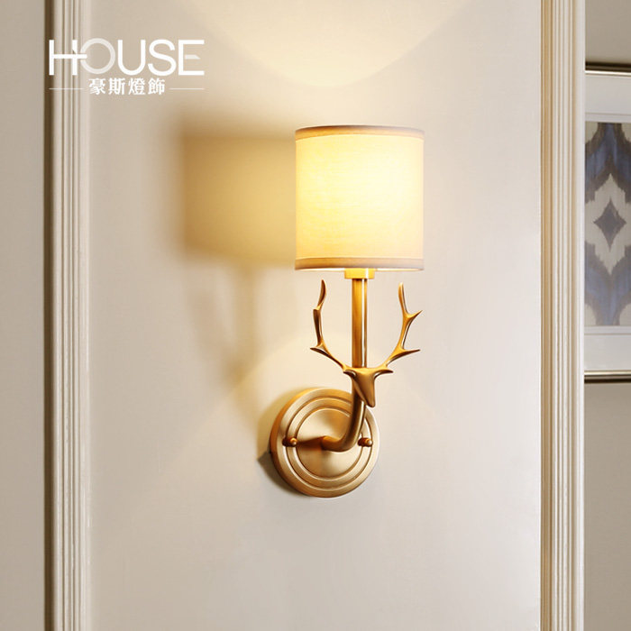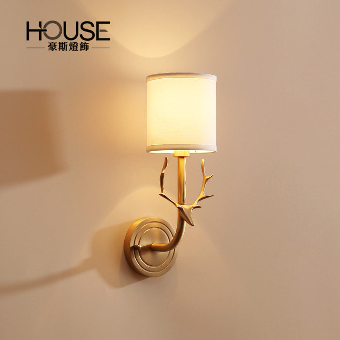豪斯灯饰美式全铜鹿头壁灯MB348001