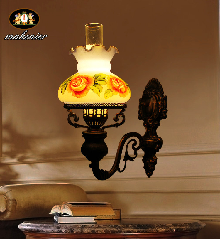 马克尼尔手绘玫瑰花美式复古煤油壁灯MKNR-49