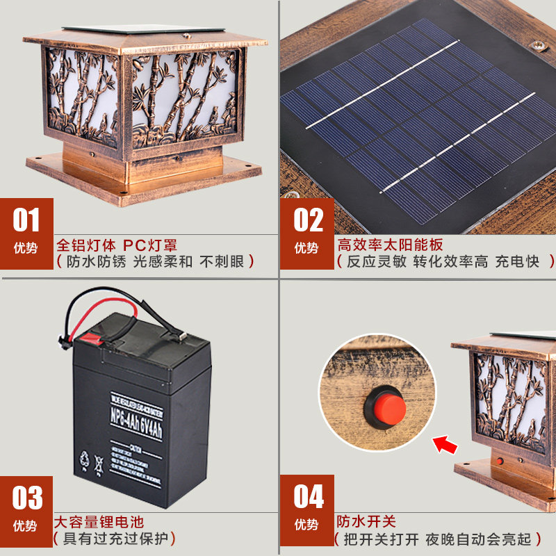 卓彩太阳能柱头灯ZC-ZTD-6506