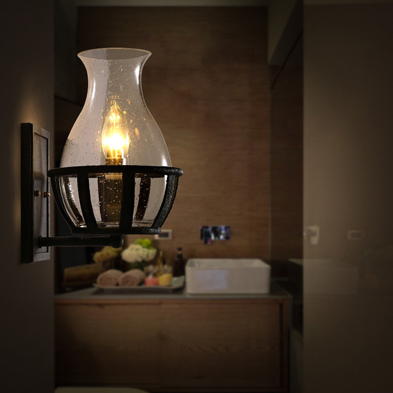 k&c美式复古怀旧玻璃酒瓶铁艺壁灯16-W1873-1