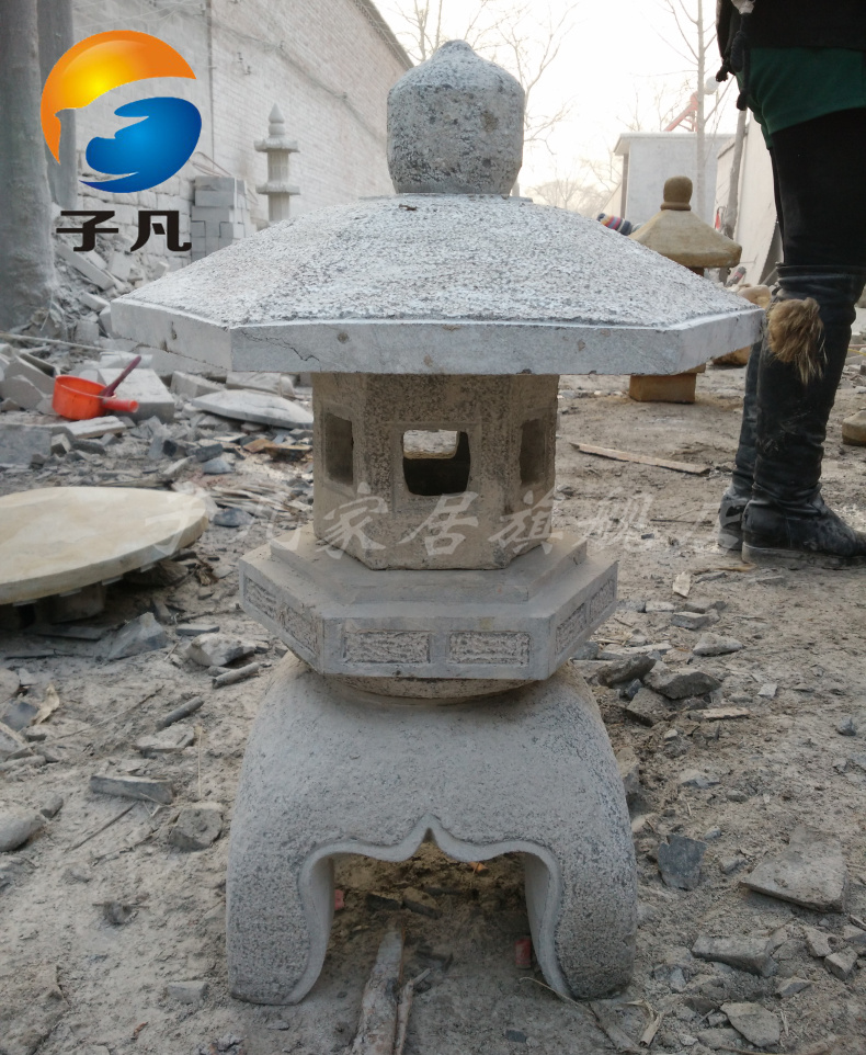 子凡青石仿古石雕圆柱形状石灯SD98
