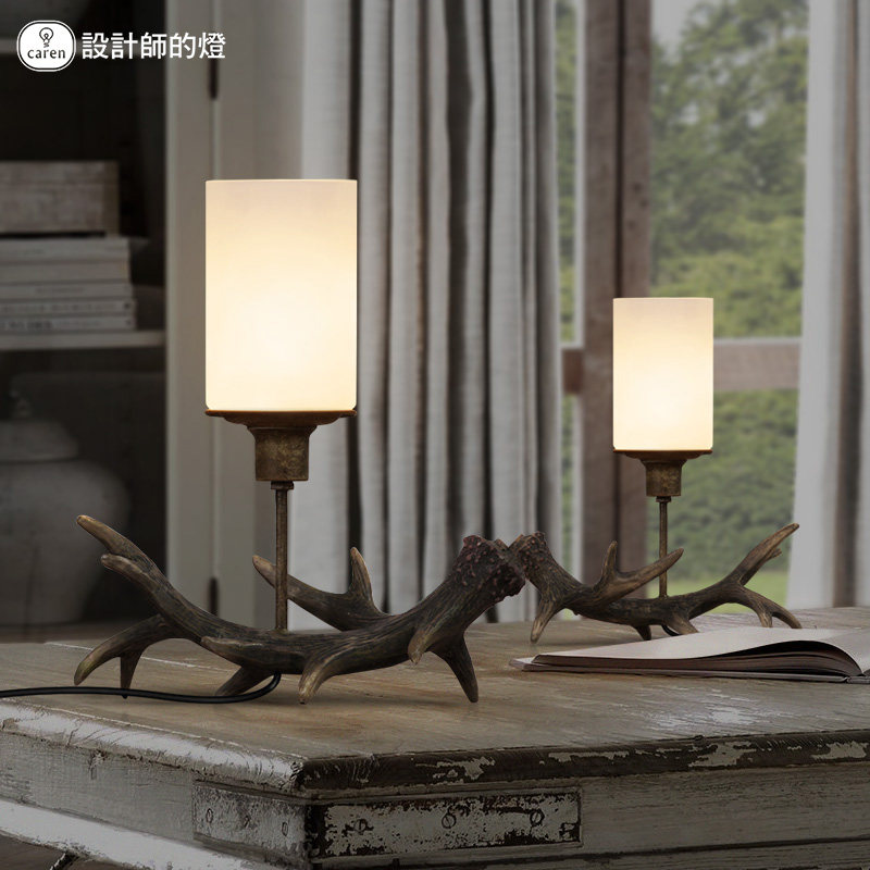 设计师的灯美式乡村仿古雕刻鹿角台灯SJS-LOO4-2