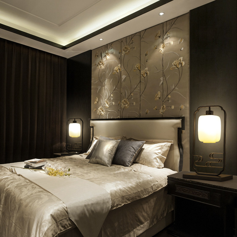 皇家太阳现代新中式铁艺玻璃灯罩装饰台灯HJ9019