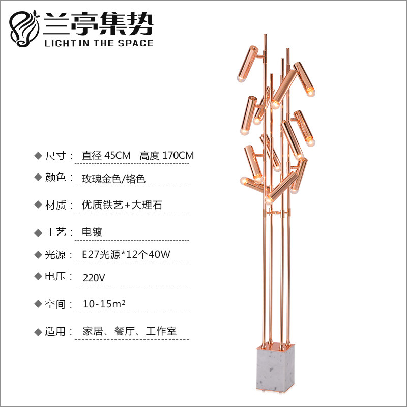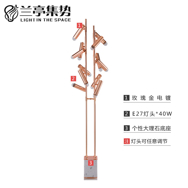 兰亭集势后现代创意玫瑰金大理石落地灯MF5718B-12