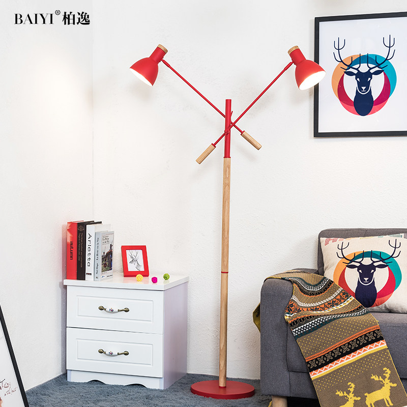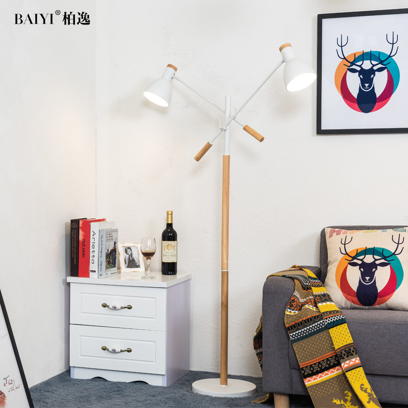柏逸北欧简约阅读原木铁艺双头落地台灯T0018-2