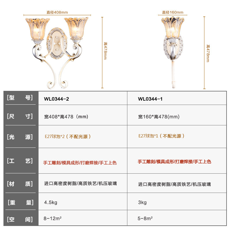 华艺灯饰艾克诗顿欧式壁灯wl0344