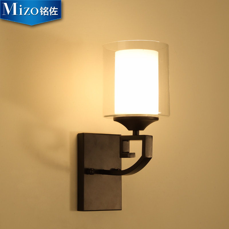 铭佐新中式现代简约铁艺玻璃壁灯MZ8786