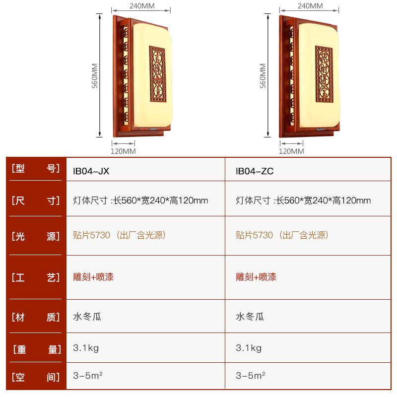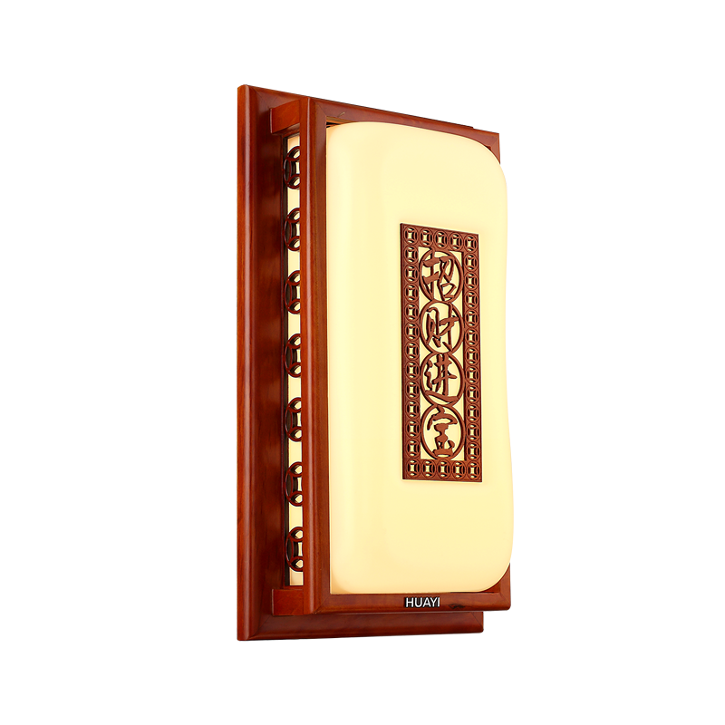 华艺灯饰新中式实木铜钱雕纹图案壁灯ib04