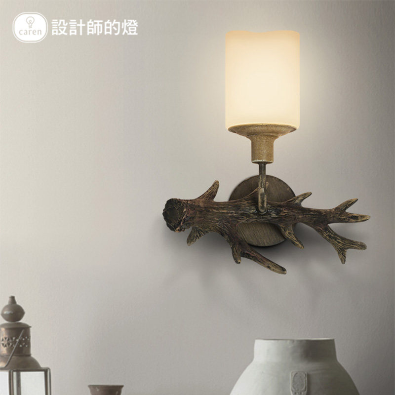 设计师的灯田园树脂鹿角壁灯