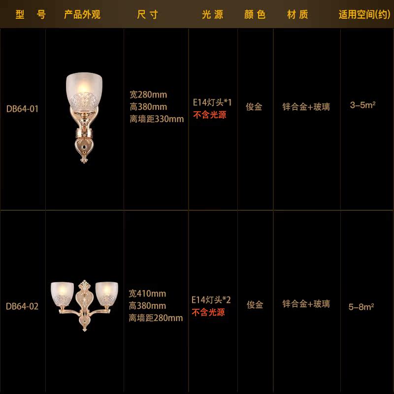 华艺灯饰简欧风锌合金磨砂玻璃壁灯db64