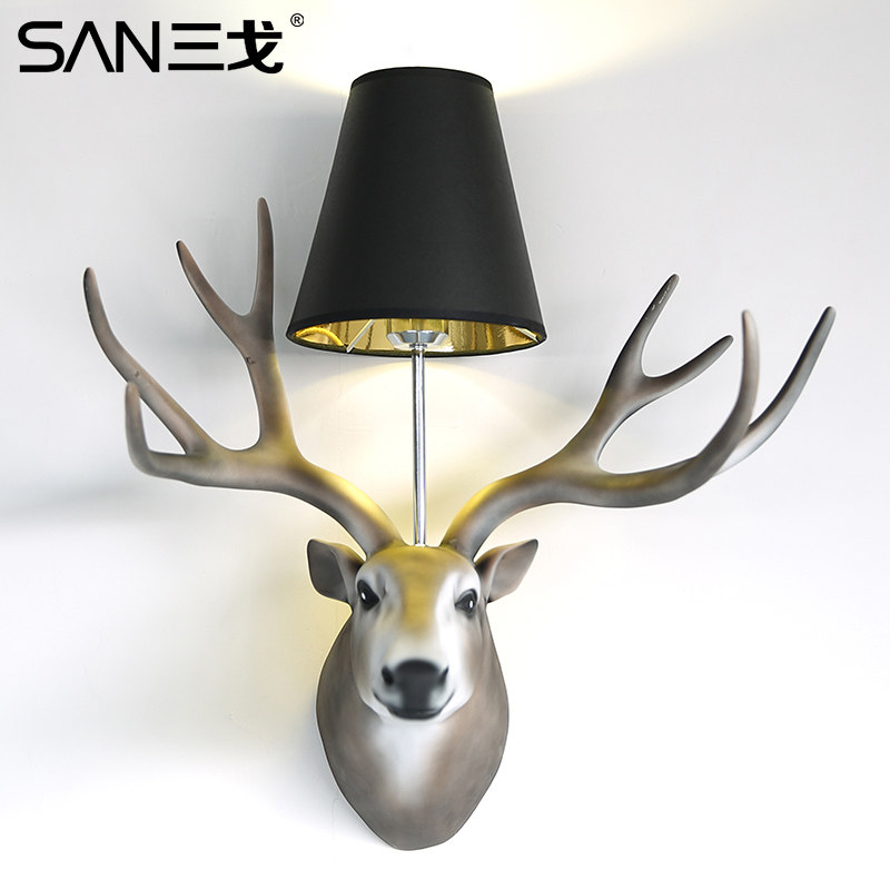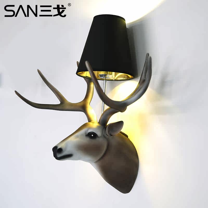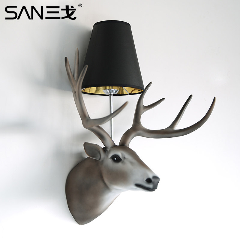 三戈鹿头壁灯