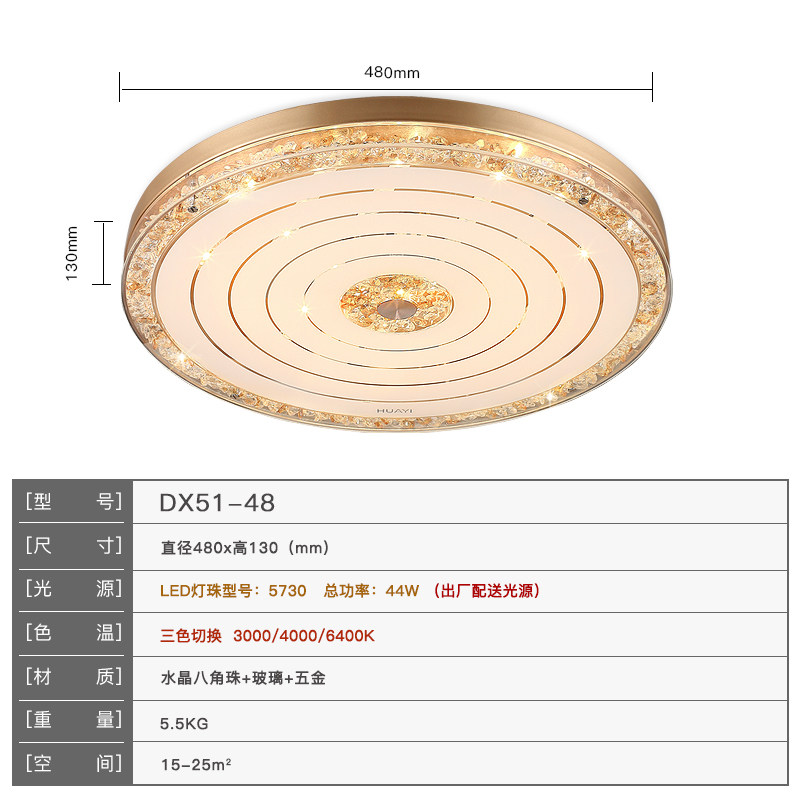 华艺灯饰现代简约圆形led水晶灯吸顶灯dx51