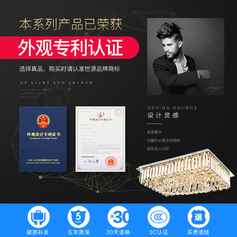世源水晶灯长方形灯led吸顶灯9406