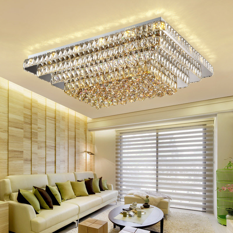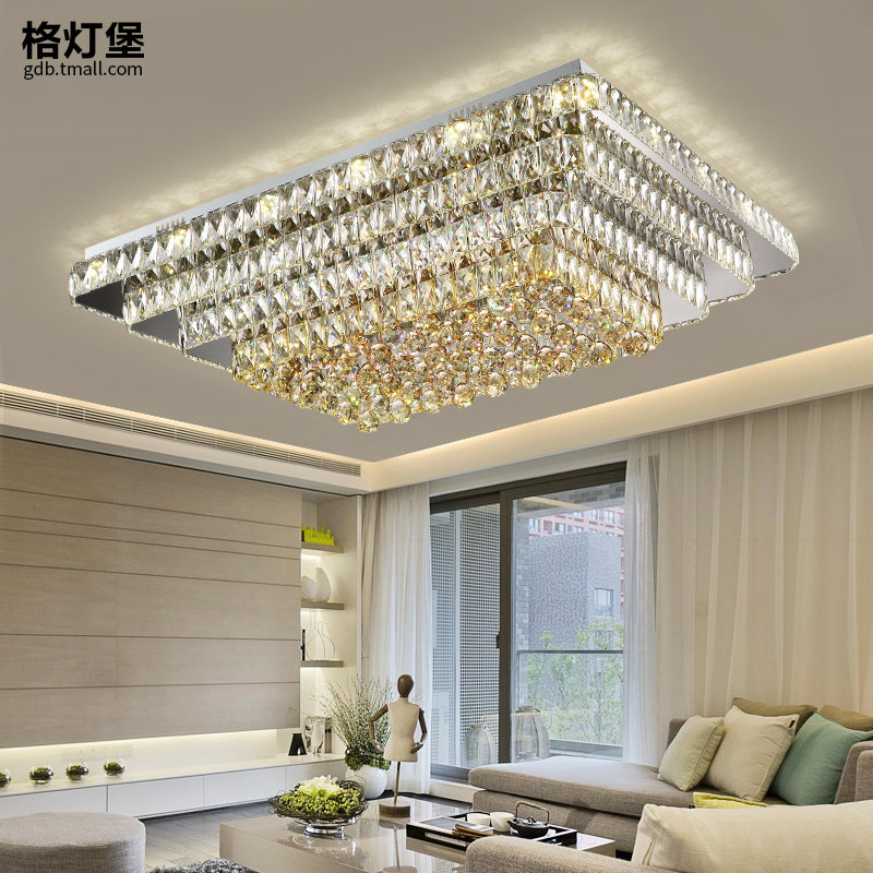 华艺灯饰 奢华简约现代客厅卧室LED长方形吸顶水晶灯具DX21
