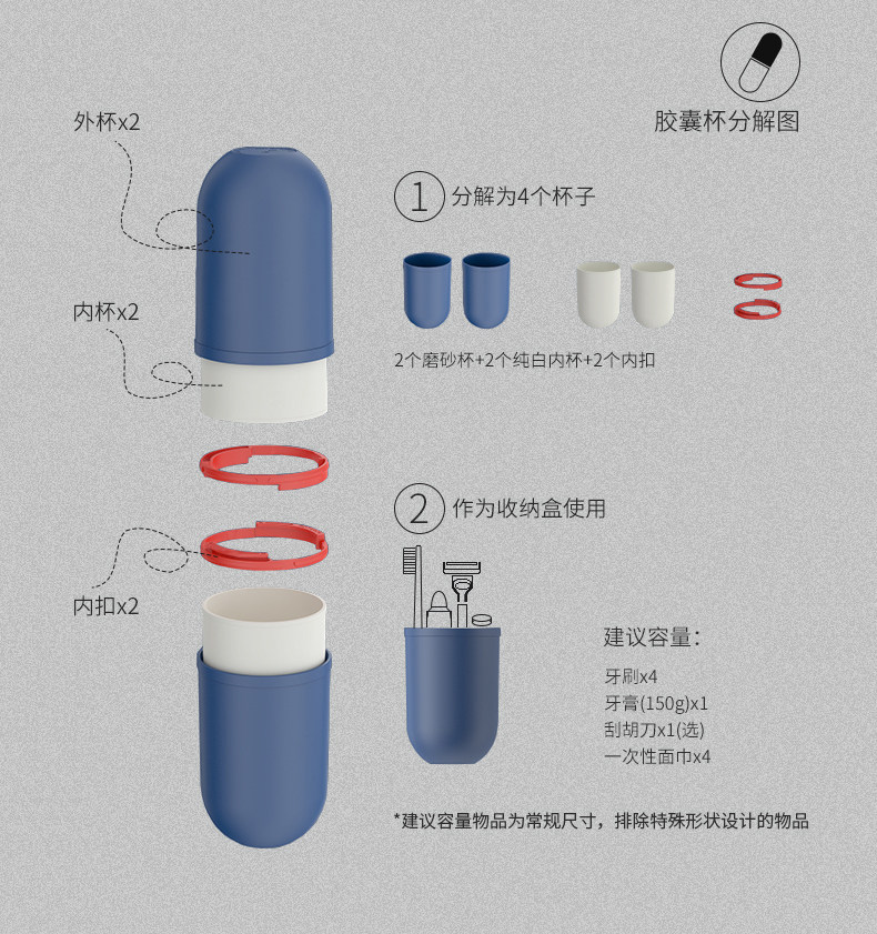 旅行洗漱杯便携牙刷牙膏杯子盒16217A